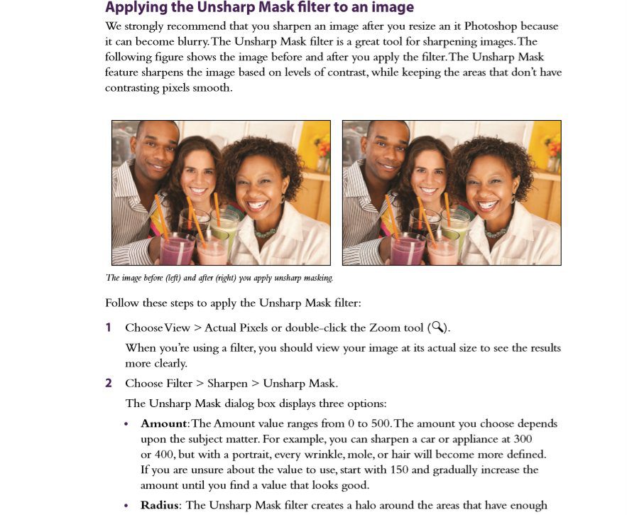 - Applying the Unsharp Mask filter to an image