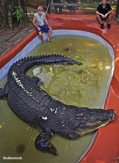 The largest crocodile in captivity is Cassius (c. 100 years old), who measures 5.48 m (17 ft 11 in) – the equivalent of two ping-pong tables laid end to end. He resides at Marineland Melanesia wildlife park. The park is located on Green Island, which sits in the Great Barrier Reef – the world’s longest reef.