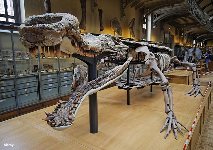Calculating the size of long-extinct creatures can be tricky, but these sizes are based on a Sarcosuchus skeleton that was excavated in Africa.