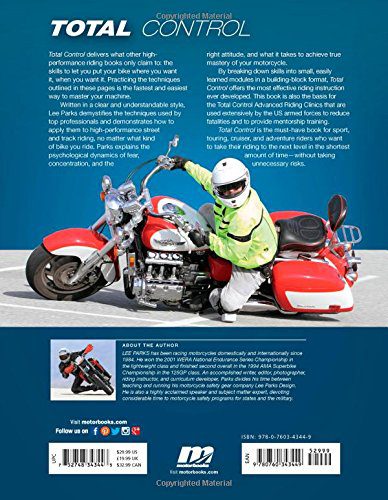 Total Control a completely revised version of one of the best-selling motorcycle riding skills books of all time. Today’s super high-performance bikes are the most potent vehicles ever sold to the public and they demand advanced riding skills. Get it right, and a modern motorcycle will provide you with the thrill of a lifetime; get it wrong and you’ll be carted off in a meat wagon. The line between ecstasy and agony is so thin that there is absolutely no margin for error. Total Control provides you with the information you need to stay on the healthy side of that line, providing a training course developed and perfected through decades of professional training in Lee Parks’ Total Control Advanced Riding Clinic. This is the perfect book for riders who want to take their street riding skills to a higher level. Total Control explains the ins and outs of high-performance street riding. Lee Parks, one of the most accomplished riders, racers, authors and instructors in the world, helps riders master the awe-inspiring performance potential of modern motorcycles. This book gives riders everything they need to develop the techniques and survival skills necessary to become a proficient, accomplished, and safer street rider. High quality photos, detailed instructions, and professional diagrams highlight the intricacies and proper techniques of street riding and the knowledge gained will apply to all brands of bikes from Harley-Davidson and Suzuki to Ducati and Kawaski to Honda and BMW and more! Readers will come away with a better understanding of everything from braking and cornering to proper throttle control, resulting in a more exhilarating yet safer ride.